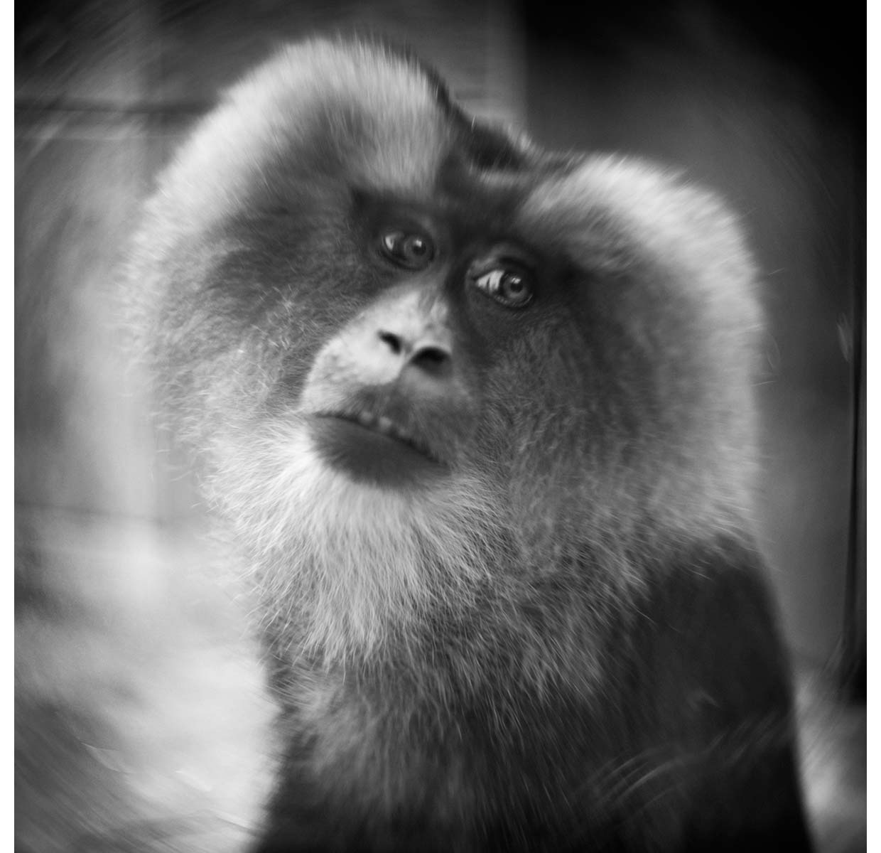 Berry spent several years traveling across Europe and America, stopping at small zoos to photograph the primates you see here. The smaller zoos allowed Berry more one-on-one time with her subjects—not an easy thing to do in large zoos where hundreds of sticky toddlers cram against the glass and teachers wrangle their third grade classes from elephants to zebras. Sometimes Berry would wait for days to get the right shot, which meant connecting beyond the glass-as-cage as well as the glass-as-lens. The results were worth the wait. Few photographers have captured (but no, let’s not use that word)—few photographers have communicated the depth and complexity of primate emotions as Berry has.
